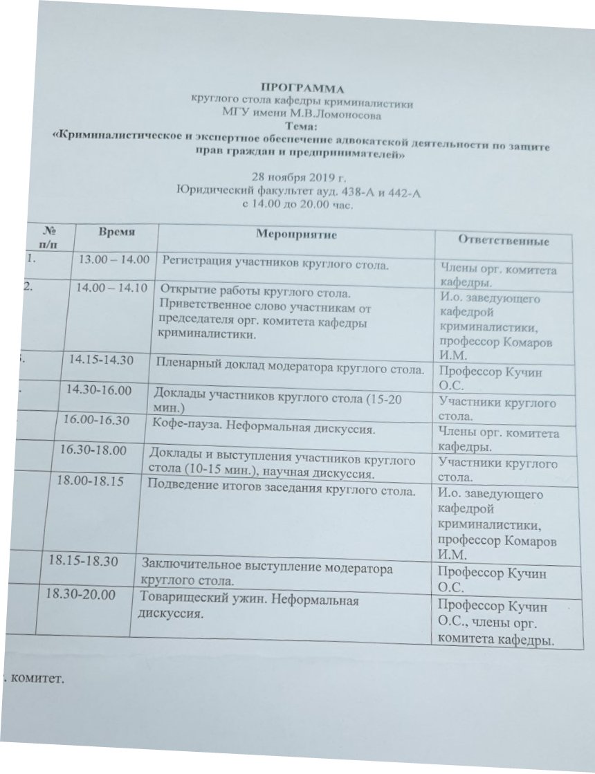 Криминалистическое и экспертное обеспечение адвокатской деятельности по защите прав граждан и предпринимателей», Московский государственный университет имени М.В. Ломоносова