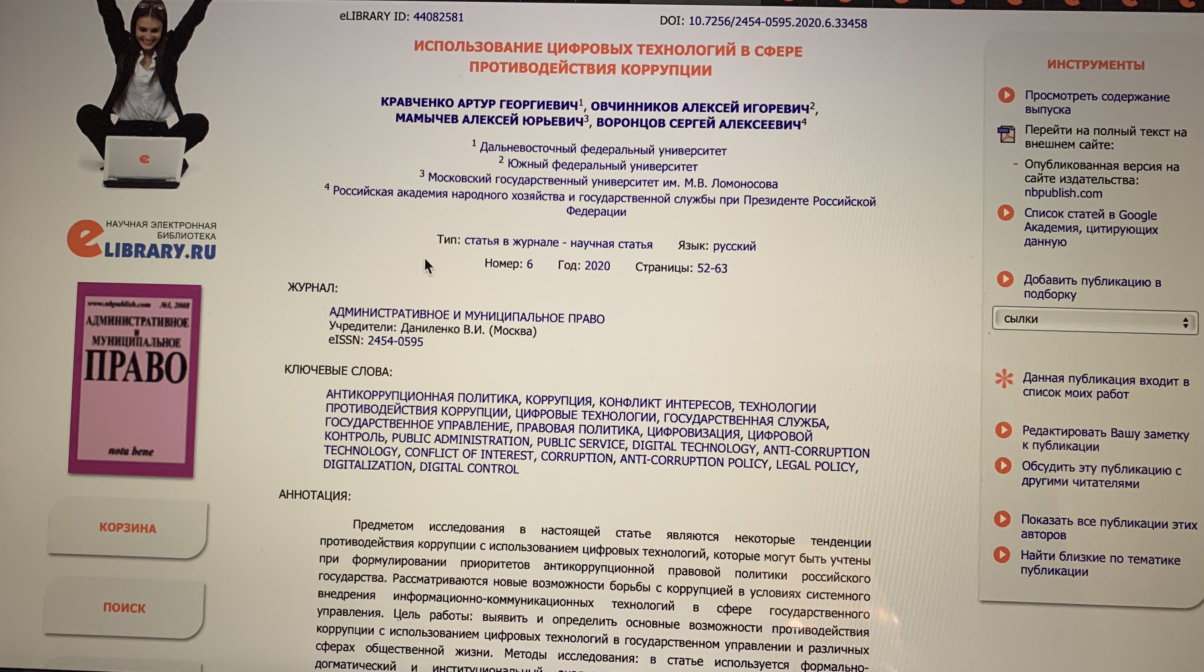 ИСПОЛЬЗОВАНИЕ ЦИФРОВЫХ ТЕХНОЛОГИЙ В СФЕРЕ ПРОТИВОДЕЙСТВИЯ КОРРУПЦИИ