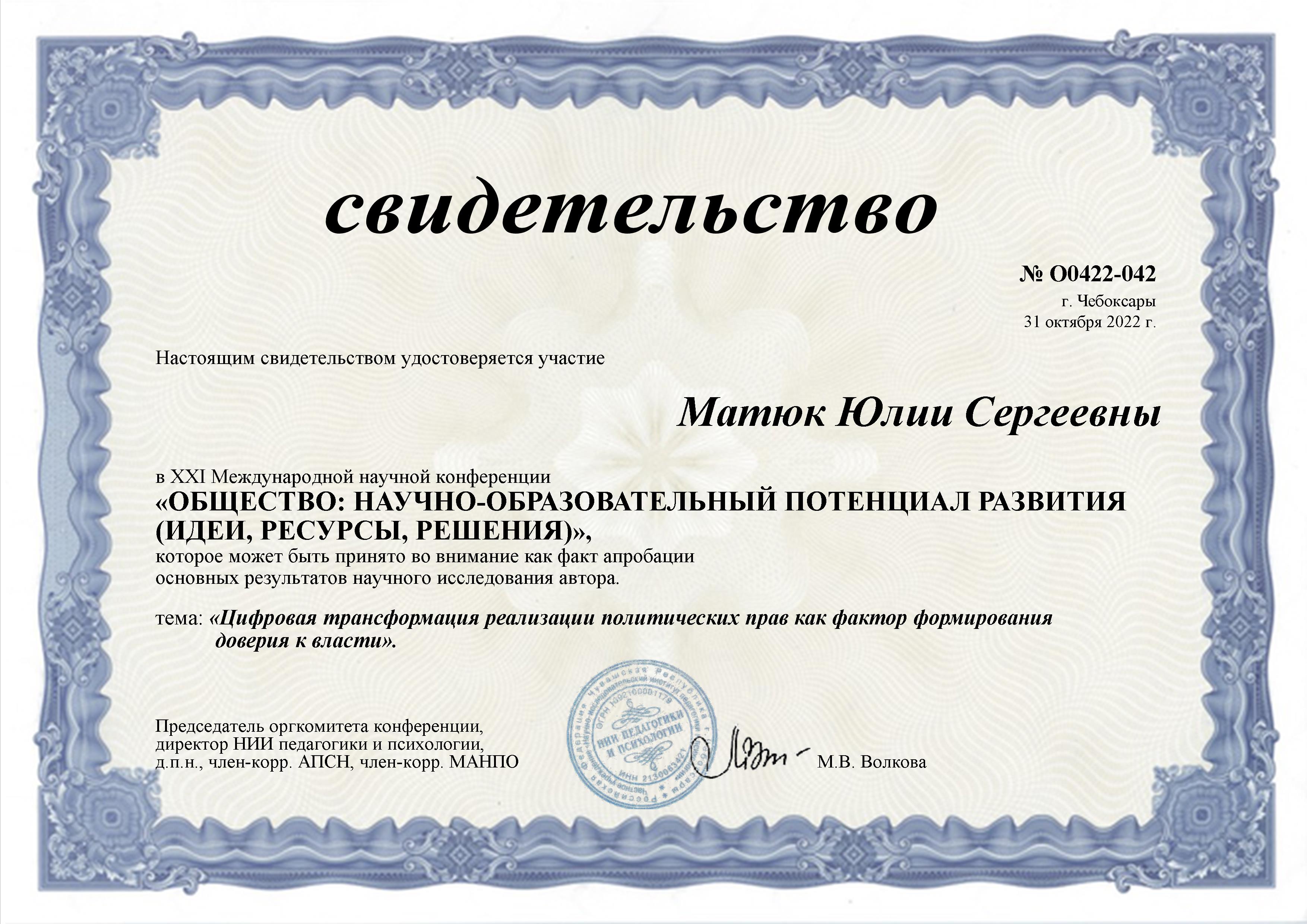 ЦИФРОВАЯ ТРАНСФОРМАЦИЯ РЕАЛИЗАЦИИ ПОЛИТИЧЕСКИХ ПРАВ КАК ФАКТОР ФОРМИРОВАНИЯ ДОВЕРИЯ К ВЛАСТИ