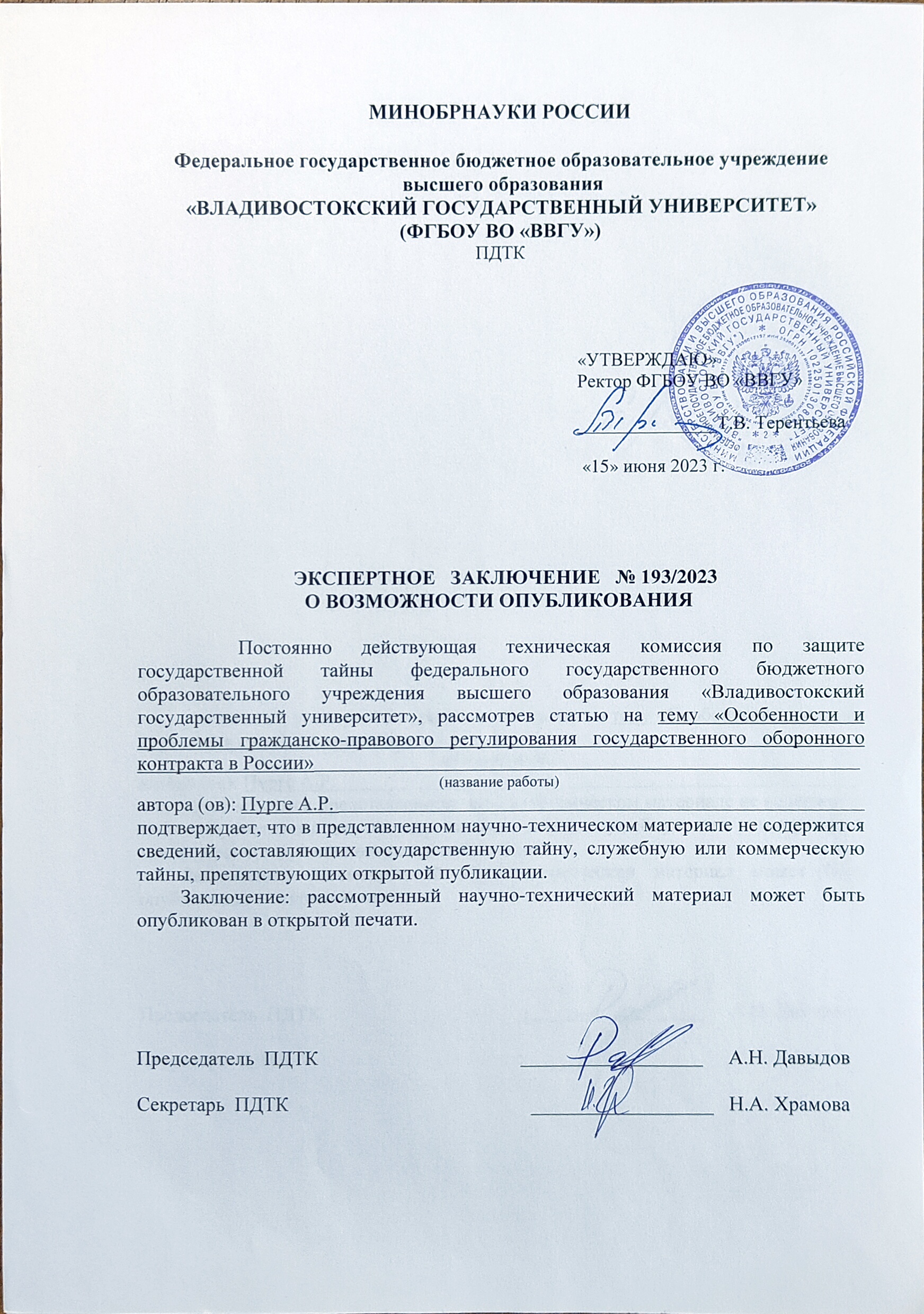 Особенности гражданско-правового регулирования государственного оборонного контракта в России