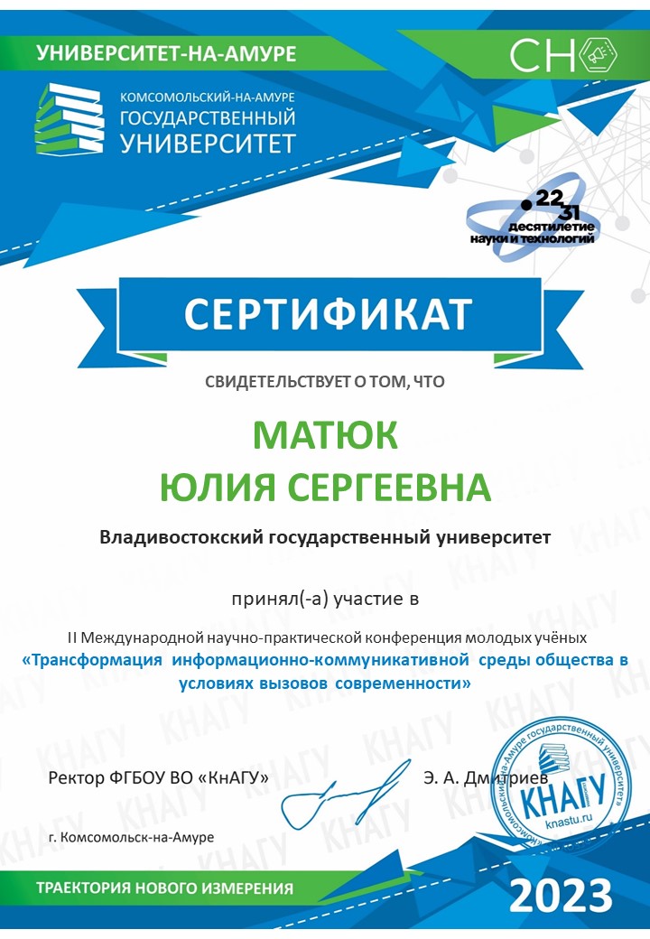сборник трудов II Международной научно-практической конференции молодых учёных «ТРАНСФОРМАЦИЯ ИНФОРМАЦИОННО-КОММУНИКАТИВНОЙ СРЕДЫ ОБЩЕСТВА В УСЛОВИЯХ ВЫЗОВОВ СОВРЕМЕННОСТИ»
