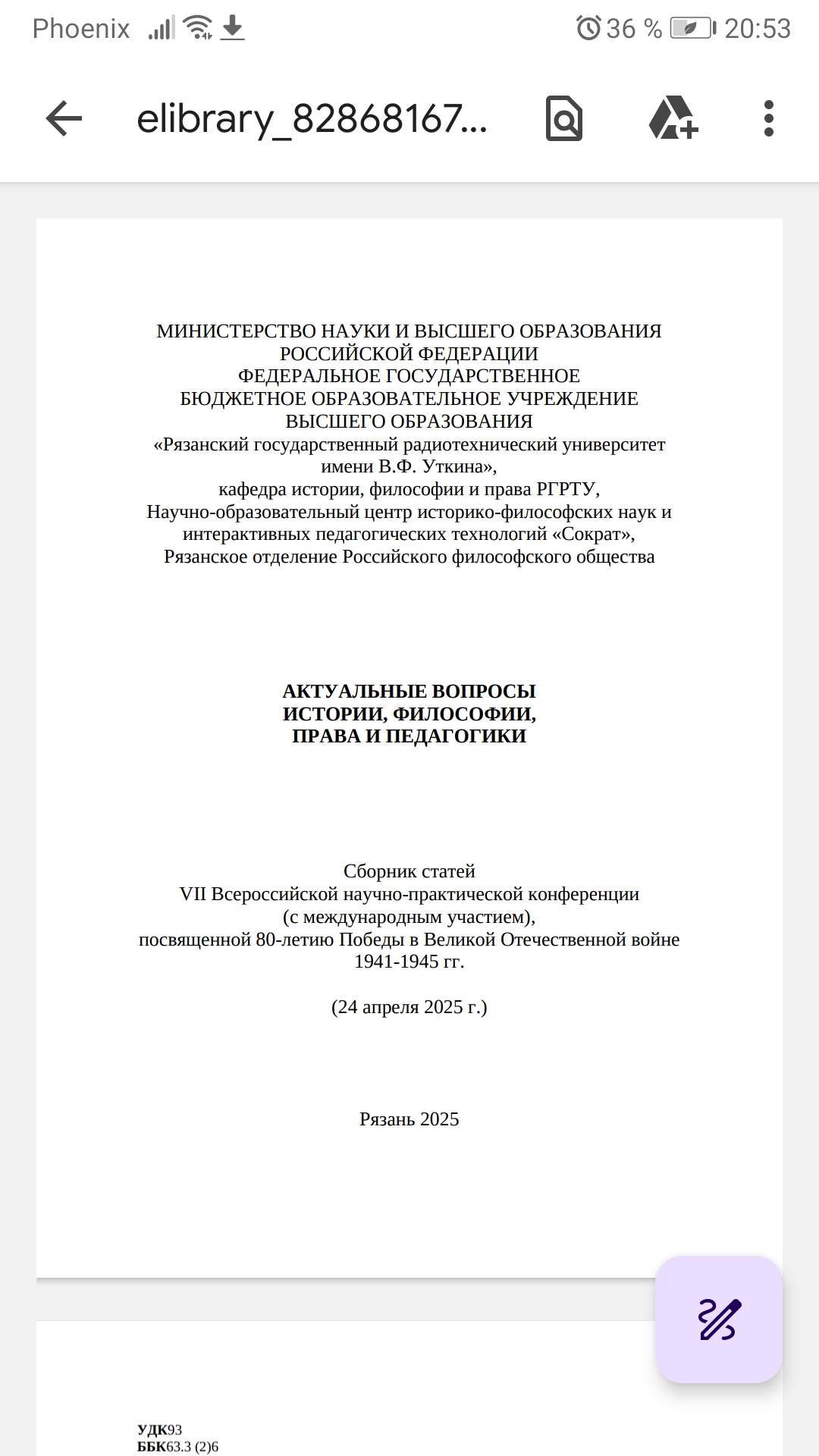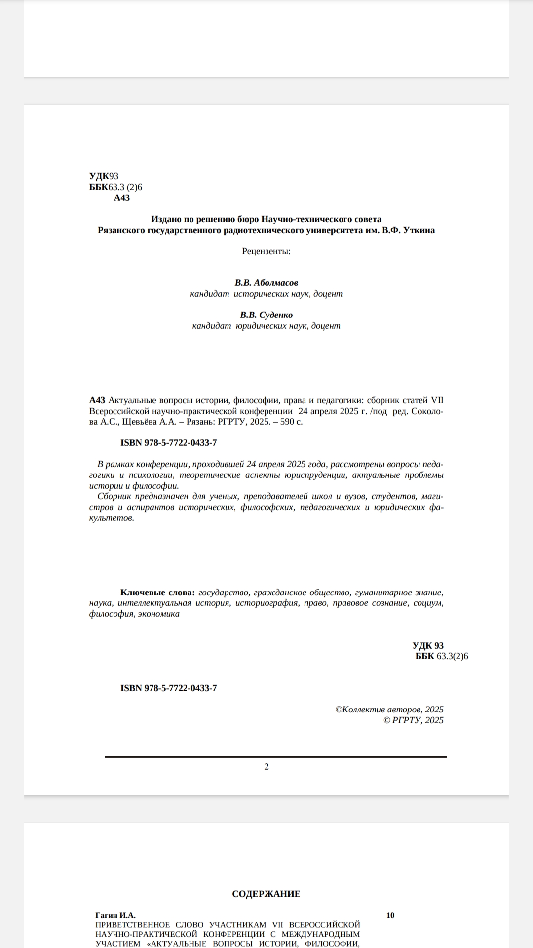 Актуальные вопросы истории, философии, права и педагогики. Сборник статей VII Всероссийской научно-практической конференции (с международным участием), посвященной 80-летию Победы в Великой Отечественной войне 1941-1945 гг. Издательство: Рязанский государственный радиотехнический университет имени В.Ф. Уткина