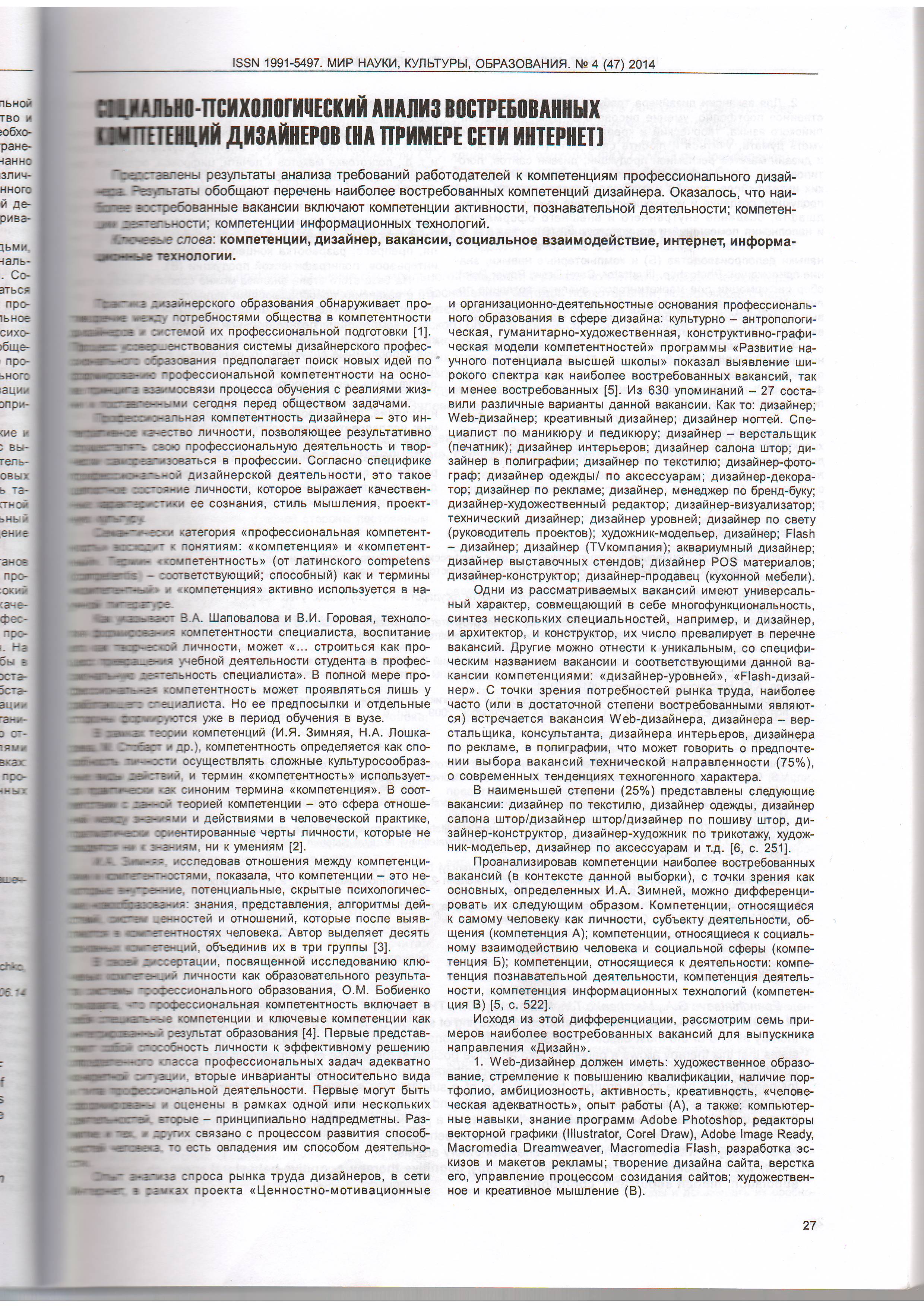 Социально-психологический анализ востребованных компетенций дизайнеров (на примере сети интернет)